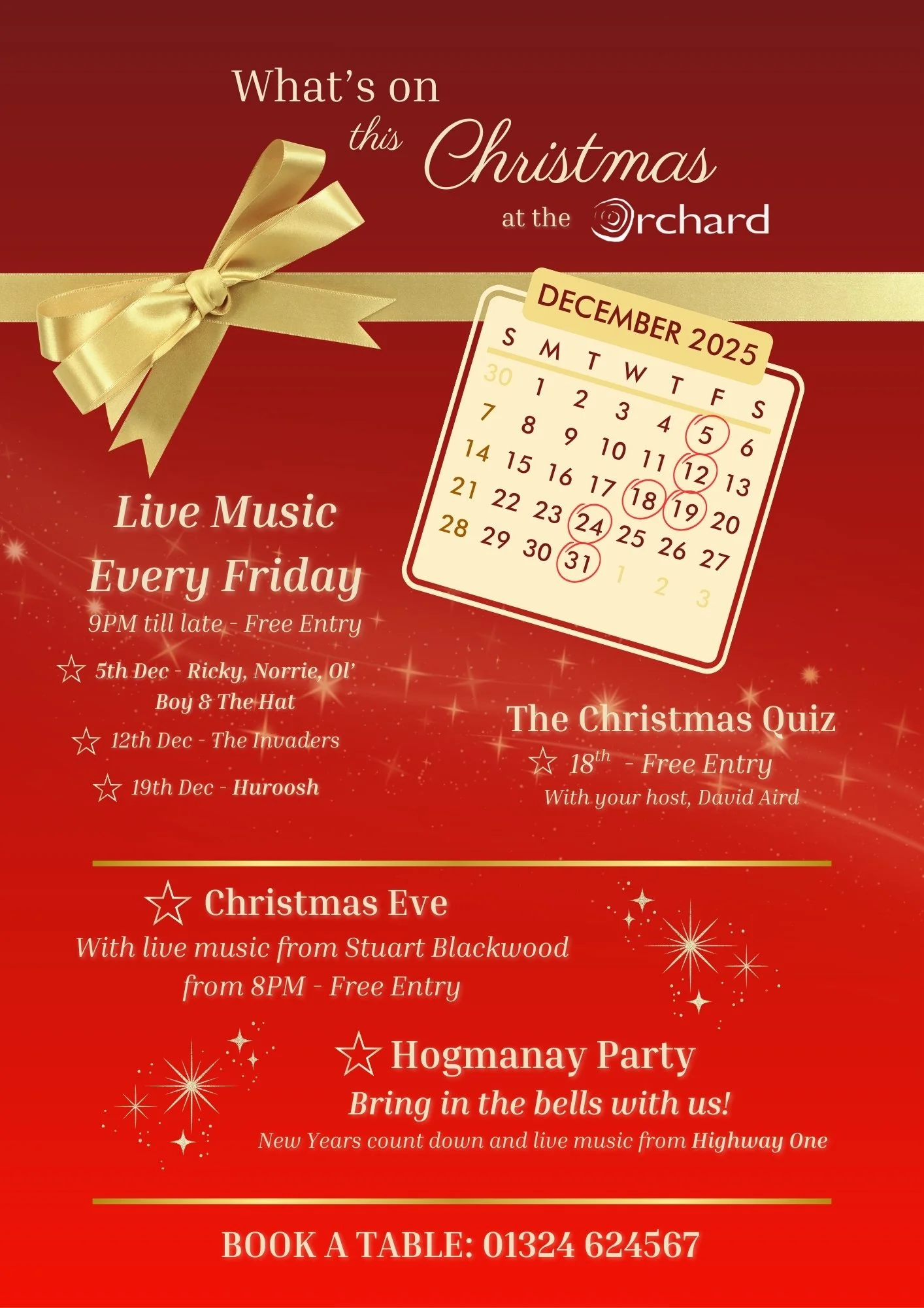 Live music EVERY FRIDAY of December + SPECIAL EVENTS for Christmas Eve & Hogmanay!